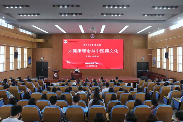 活動中,學(xué)校退休干部韓寶來教授以“大健康理念與中醫(yī)藥文化”為題,從“中醫(yī)藥優(yōu)秀傳統(tǒng)文化的內(nèi)涵、大健康理念與中醫(yī)藥文化淵源、守正創(chuàng)新傳承精華”等三個方面深入淺出地講解了中醫(yī)藥文化的精髓、特色和價值,當(dāng)代大健康產(chǎn)業(yè)的理念、政策和發(fā)展,從文化和哲學(xué)角度解讀了二者的內(nèi)在聯(lián)系,并結(jié)合現(xiàn)代科技與傳統(tǒng)中醫(yī)藥的優(yōu)勢,探討了二者相結(jié)合在當(dāng)代大健康領(lǐng)域的發(fā)展前景。講座既有對中醫(yī)藥文化和大健康的哲學(xué)思考,又有大健康行業(yè)發(fā)展及研究現(xiàn)狀的前沿信息,為在座師生提供了“讀懂中國”的中醫(yī)藥文化視角。