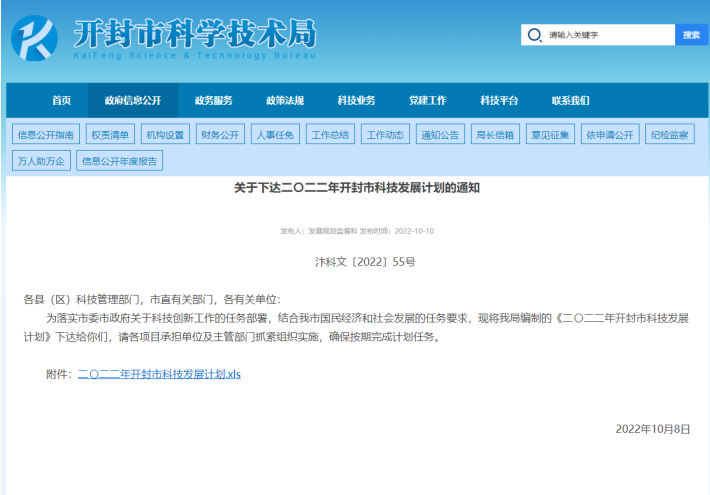 中新河南網(wǎng)10月13日電:近日,開封市科技局官網(wǎng)發(fā)布了《關(guān)于下達(dá)二〇二二年開封市科技發(fā)展計(jì)劃的通知》,公布了2022年度市級(jí)科技計(jì)劃項(xiàng)目。