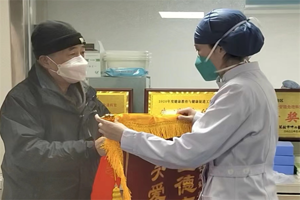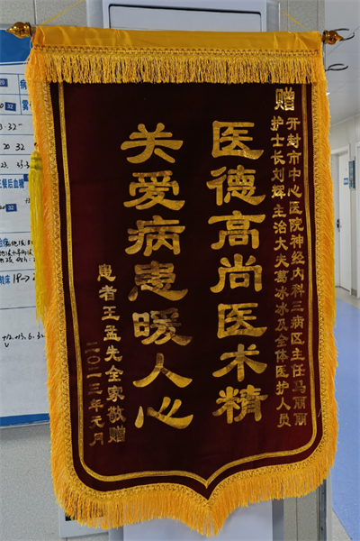 中新河南網(wǎng)1月13日電:“謝謝中心醫(yī)院醫(yī)護(hù)人員,我父親92歲能夠戰(zhàn)勝新冠病毒,相信其他人更加可以。加油!”一大早,患者王爺爺?shù)膬鹤蛹凹胰耸殖瞩r花與錦旗來到開封市中心醫(yī)院神經(jīng)內(nèi)科三病區(qū),對王爺爺戰(zhàn)勝新冠病毒康復(fù)出院表示感謝。