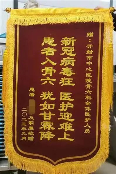 中新河南網(wǎng)1月16日電:近日,開封市中心醫(yī)院骨科六病區(qū)收到了一面特殊的錦旗。