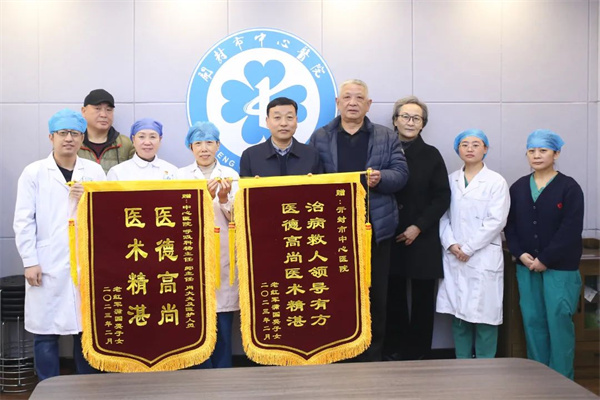 中新河南網(wǎng)2月23日電:2月22日,百歲老人蒲老先生的家屬為開封市中心醫(yī)院送來兩面錦旗。