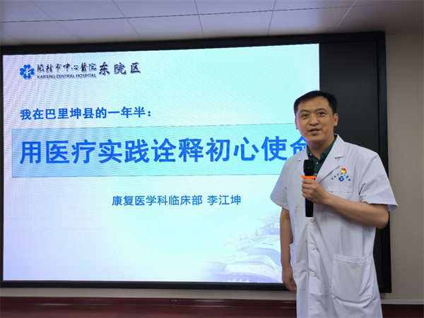 中新河南網(wǎng)5月26日電:5月25日,開(kāi)封市中心醫(yī)院東院區(qū)三樓大會(huì)議室舉行了一場(chǎng)特殊的報(bào)告會(huì)。在會(huì)上,來(lái)自康復(fù)醫(yī)學(xué)科臨床部的李江坤醫(yī)生向與會(huì)人員介紹了他自2021年9月起,在新疆哈密市巴里坤縣為期一年半的援疆工作經(jīng)歷。