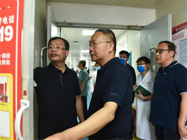 中新河南網(wǎng)6月21日電:端午假期將至,為確保醫(yī)院各項(xiàng)工作安全平穩(wěn)有序運(yùn)行,讓市民擁有一個(gè)和諧、安全、穩(wěn)定的就醫(yī)環(huán)境,6月21日上午,開封市衛(wèi)健委黨組成員、開封市中心醫(yī)院院長(zhǎng)李華強(qiáng)帶領(lǐng)院長(zhǎng)辦公室、醫(yī)務(wù)部、護(hù)理部、保衛(wèi)科、總務(wù)科、宣傳科、藥劑科等相關(guān)科室負(fù)責(zé)人,開展節(jié)前行政大查房,對(duì)院內(nèi)重點(diǎn)區(qū)域、重點(diǎn)崗位進(jìn)行巡查與督導(dǎo)。