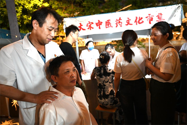 看,那璀璨燈光下醫(yī)師們被群眾簇?fù)碇姆泵ι碛;聞,空氣中飄來(lái)蕩去的那一縷縷中藥香氣;品,那中藥茶飲在喉嚨里緩緩滑下的一絲絲甘甜;感,那一次次專業(yè)的脊柱手法正骨、穴位保健推拿帶來(lái)身輕如燕的快感,讓廣大人民群眾切身感受到大宋中醫(yī)藥文化獨(dú)特的魅力。