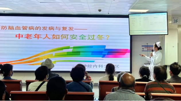 隨著天氣慢慢漸冷,即將進入冬季。腦血管流行病學的一項調(diào)查結(jié)果表明腦血管病的發(fā)病率、死亡率高峰均在每年冬季1-2月份。如何度過一個溫暖健康的冬天呢?李俊霞護士長介紹了冬季易發(fā)生腦血管病的原因,分別從衣、食、住、行、心理等方面進行通俗易懂地講解,提高大家對腦血管疾病的預防意識,自覺養(yǎng)成良好的健康生活方式,實現(xiàn)腦卒中的早防早診早治。