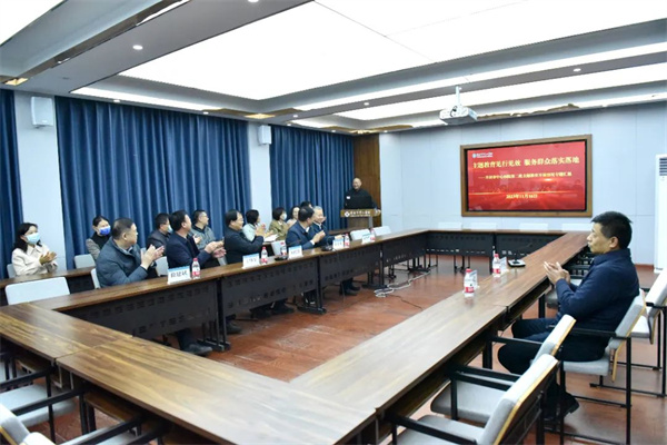 在該院教學(xué)樓三樓會(huì)議室,李華強(qiáng)書記代表院黨委向參與調(diào)研的市衛(wèi)健委領(lǐng)導(dǎo)一行表示歡迎和感謝,并就主題教育開展情況、新院區(qū)建設(shè)情況、區(qū)域醫(yī)療中心建設(shè)及學(xué)科發(fā)展情況、落實(shí)“便民就醫(yī)少跑腿”七大舉措情況等工作進(jìn)行簡要匯報(bào)。
