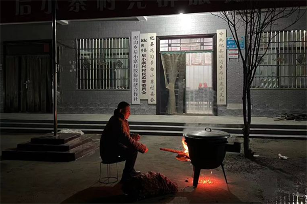 清晨5點,駐村工作隊及村委干部開始忙碌起來,提前準備各類食材,生火熬制臘八粥。
