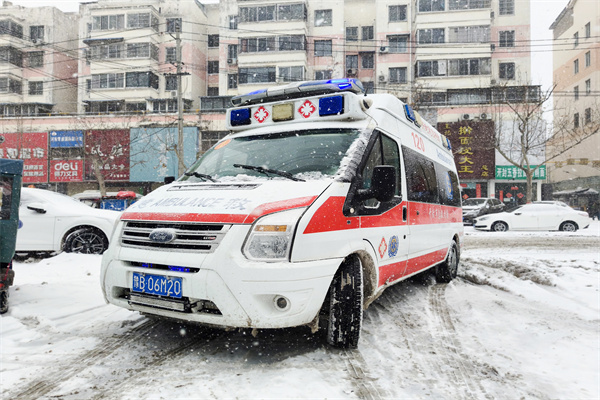 雪越下越大,救護(hù)車在泥濘道路上穩(wěn)健地行駛,馬路上翻滾著泥濘的冰雪,車窗上漂浮著雪花。救護(hù)車司機(jī)師傅張東亮的眼神中充滿了緊張和堅(jiān)定,他的心中只有一個(gè)信念:盡快將病人安全送達(dá)醫(yī)院。他邊打著方向盤,邊打開車上的除霧裝置,提高車廂溫度,窗外的雨刷器左右搖擺,“吱吱”作響,結(jié)成冰的雪花逐漸融化,氤氳在泛著霧氣的車窗上。