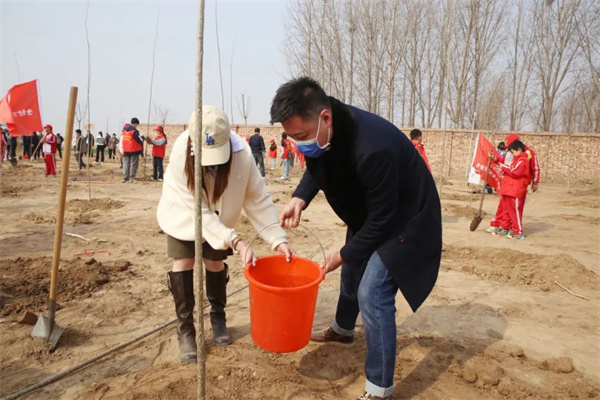 活動現(xiàn)場一片熱鬧忙碌的景象。在工作人員指導(dǎo)下,我院團(tuán)員青年個個干勁十足,搬苗運(yùn)水、培土正苗、提水澆灌、踩土固苗,在大家的分工協(xié)作與默契配合下,齊心協(xié)力栽下了一株株樹苗,為初春的大地再添新綠,呈現(xiàn)出勃勃生機(jī)。