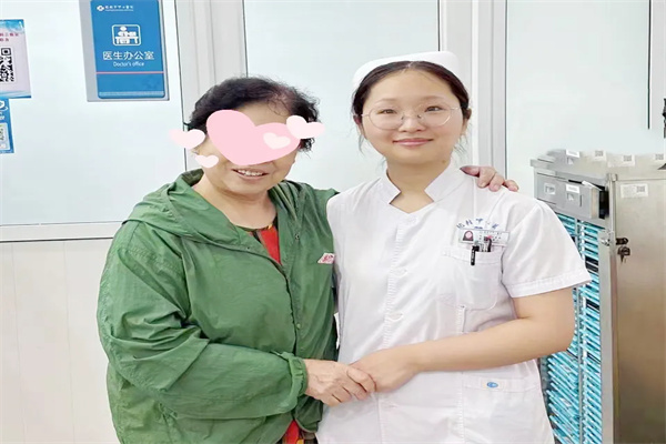 李寧主任握著朱阿姨的手說(shuō):“感謝您對(duì)我們工作的肯定,同時(shí)也是對(duì)我們的鞭策和鼓勵(lì)”。田亞杰護(hù)士說(shuō):“這是我的工作,我的責(zé)任,是我應(yīng)該做的,也感謝您對(duì)我們工作的認(rèn)可和鼓勵(lì)。”