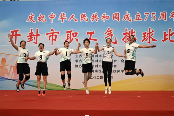 中新河南網(wǎng)10月10日電:在金秋送爽的美好時節(jié),由市總工會主辦的開封市職工氣排球比賽,于10月9日在河南醫(yī)藥健康技師學(xué)院拉開帷幕,共有來自全市90支代表隊900余名優(yōu)秀選手參加。在開封市中心醫(yī)院工會的積極響應(yīng)組織下,此次比賽醫(yī)院共派出20名選手參加男子團體、女子團體氣排球項目角逐,為比賽注入了無數(shù)激動人心的精彩瞬間。經(jīng)過激烈的比拼,最終我院男子隊、女子隊雙雙榮獲一等獎的佳績。
