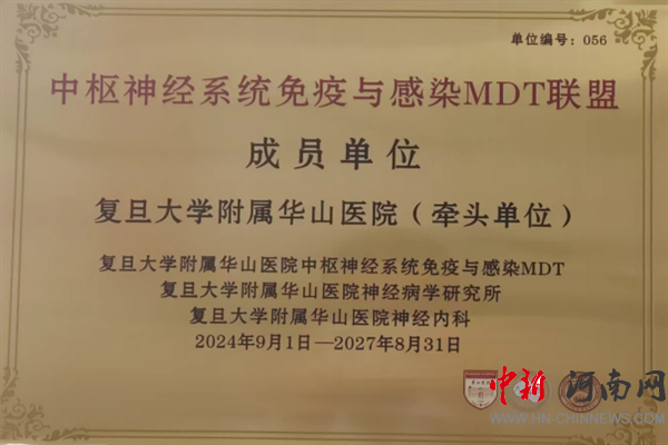 喜訊!開封市中心醫(yī)院獲批復旦大學附屬華山醫(yī)院中樞神經(jīng)系統(tǒng)免疫與感染MDT聯(lián)盟成員單