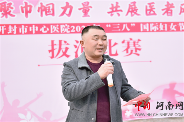 中新河南網(wǎng)3月10日電:在這春和景明、萬物復(fù)蘇的初春時(shí)節(jié),為慶祝第115個(gè)“三八”國際婦女節(jié)的到來,凝聚巾幗力量,展現(xiàn)巾幗風(fēng)采,進(jìn)一步豐富我院廣大職工的文化生活,開封市中心醫(yī)院工會(huì)在院黨委的大力支持下精心策劃,于3月7日下午,開展了以“凝聚巾幗力量 共展醫(yī)者風(fēng)采”為主題的“三八”國際婦女節(jié)拔河比賽活動(dòng)。本次活動(dòng)由黨委委員、副院長趙海源主持。