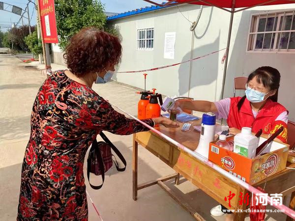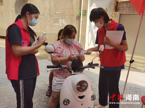 您好!請(qǐng)戴好口罩,保持一米線的距離,來這里測(cè)量體溫。”8月9日上午,在溫縣番田鎮(zhèn)東留石村疫情防控檢測(cè)點(diǎn),身穿紅馬甲的大學(xué)生志愿者張兆霖和其他2名志愿者正在給來往人員做登記。