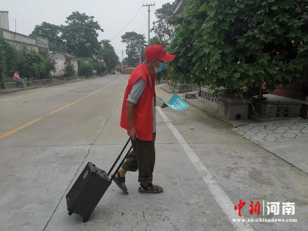 在疫情防控期間,天微亮他就起身開始工作。他身穿志愿服,頭戴志愿帽,胸戴黨徽,利用小喇叭在村內(nèi)反復(fù)播放防疫提示。看到村民在村頭聚堆聊天,他總是耐心規(guī)勸,不急不躁;對于進(jìn)出人員,他耐心詢問去向,遇到不聽勸阻的,他拿著宣傳手冊,耐心解釋。家人不忍心他這樣勞累,想帶他回縣城頤養(yǎng)天年,老人總是說:“這里是生我養(yǎng)我的根,我哪里也不去,只要我還有一口氣,我就要干。”