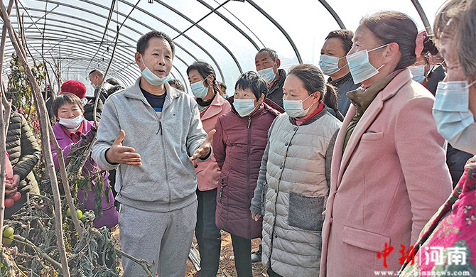 圖① 農閑時節(jié),高素質農民培訓班辦到了田間地頭,濟源示范區(qū)王屋鎮(zhèn)羅莊村的群眾在向老師請教、學習番茄種植技術。