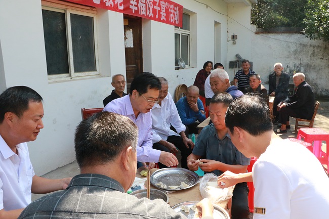 在村部會(huì)議室,張振宇一行同全村五保及高齡老人進(jìn)行親切交流,詳細(xì)詢問他們的身體狀況、生活情況,為他們送上月餅等慰問品,并致以節(jié)日的問候和美好的祝福。隨后,機(jī)關(guān)黨支部聯(lián)合雙輪村黨總支開展“幸福餃子宴”活動(dòng)。活動(dòng)中,大家圍坐在一起,包餃子、聊家常、談變化、話未來。餃子雖小,但每一個(gè)都包裹著一份愛心、一份孝心、一份敬老之心。