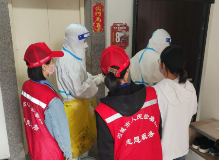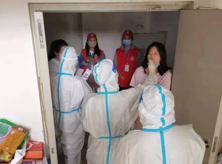 8:30,韓輝、郅欣、孫怡萍穿上志愿服、戴好口罩一起參加所在社區(qū)的志愿者活動(dòng),她們率先敲開(kāi)“居家隔離觀察”住戶的門,協(xié)助核酸檢測(cè)人員做好核酸采樣。
