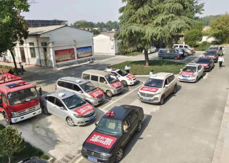 上午8時,宣傳車隊在鎮(zhèn)政府院內(nèi)集合,進(jìn)行集中宣傳。