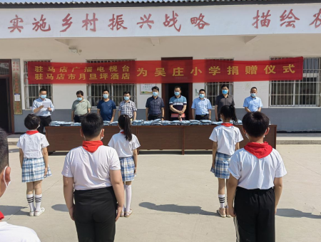 中新河南網(wǎng)5月26日電 5月25日上午,駐馬店市廣播電視臺(tái)攜手駐馬店市月旦坪酒店到玉山鎮(zhèn)吳莊村,舉行愛(ài)心校服捐贈(zèng)儀式。參加捐贈(zèng)儀式的有駐馬店廣播電視臺(tái)黨組成員、副臺(tái)長(zhǎng)劉榮亞,玉山鎮(zhèn)鎮(zhèn)長(zhǎng)陳哲宇、駐馬店廣播電視臺(tái)科教頻道總監(jiān)馮亮、駐馬店尚明教育董事長(zhǎng)李明超、駐馬店月旦坪大酒店總經(jīng)理李俊立、玉山鎮(zhèn)中心校校長(zhǎng)牛新坡、吳莊村駐村第一書(shū)記曾龍、吳莊村黨支部書(shū)記黃明喜。