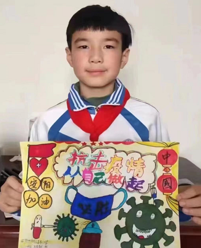 2021年安陽(yáng)疫情爆發(fā),全民抗疫。胡敬淵作為一名少先隊(duì)員,做不了醫(yī)生護(hù)士,也做不了志愿者,但他能做一名抗“疫”小戰(zhàn)士,只要呆在家里不外出,保護(hù)好自己,配合社區(qū)做核酸檢測(cè),就是在為抗“疫”做貢獻(xiàn)!隔離病毒,不能隔離愛。他制作了一幅幅設(shè)計(jì)新穎、圖文并茂,浸潤(rùn)了無(wú)限愛心的手抄報(bào),有的講述了如何做好自我保護(hù)抗擊疫情,有的表達(dá)了對(duì)沖鋒一線的白衣天使的深深敬意,有的則表達(dá)了對(duì)安陽(yáng)對(duì)湯陰的美好祝福……還有一些以錄制視頻的方式,為我們的城市加油、吶喊!他趁每次做核酸的機(jī)會(huì),積極主動(dòng)地向值班卡點(diǎn)的醫(yī)護(hù)人員和工作人員送去手套和熱水,送去溫暖和關(guān)心。