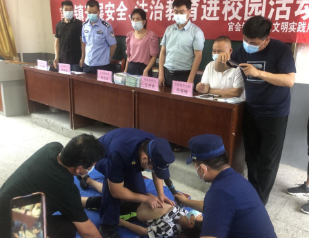 隨后,官會司法所邀請消防站的消防員為廣大師生普及遇到火情應當及時撥打119,正確使用滅火器的方法和火場自救逃生等消防安全知識。消防員現場邀請師生參與針對青少年在暑期游泳中遭遇溺水被救上岸后如何進行心肺復蘇的模擬演練,傳授了心肺復蘇的要領。