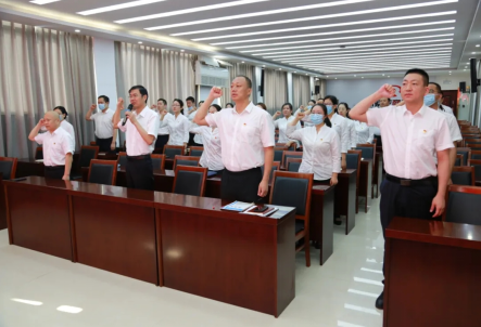 全體黨員干部一起面向黨旗,舉起右手,在黨委書記、董事長閔偉的帶領下莊嚴宣誓:“我志愿加入中國共產(chǎn)黨,擁護黨的綱領,遵守黨的章程,履行黨員義務,執(zhí)行黨的決定……”。一次重溫,就是一次升華,右手握拳、挺胸抬頭、目光堅毅、擲地有聲。通過儀式感召,進一步增強對黨忠誠、積極工作、為共產(chǎn)主義事業(yè)奮斗終身的信心和決心,以更加飽滿的熱情發(fā)揮共產(chǎn)黨員的先鋒模范作用,永葆共產(chǎn)黨員的政治本色。