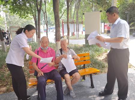 在紅色詩(shī)歌朗誦后,綜合管理部黨支部還開展了“打擊整治養(yǎng)老詐騙”宣傳活動(dòng)。黨員同志給游園中的老年客戶群體發(fā)放宣傳折頁,通過金融詐騙等案例講解,讓老年客戶提高防范金融詐騙的警覺性,樹立較強(qiáng)的防范意識(shí)。