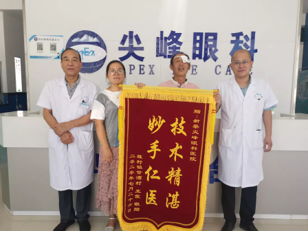 家住新蔡縣練村鎮(zhèn)、中國好人、好媳婦王霞的公公患有白內(nèi)障到新蔡尖峰眼科醫(yī)院找楊院長治療。在護理老人住院期間,親眼目睹了楊院長帶領的新蔡尖峰醫(yī)院的髙水平醫(yī)療技術(shù)與優(yōu)質(zhì)服務全過程。出院后為感謝楊院長和他帶領的醫(yī)療團隊特贈一面錦旗上書:“技術(shù)精湛、妙手仁醫(yī)”。