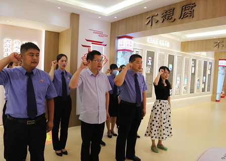 會(huì)后,全體參會(huì)人員在四樓警示教育中心面向黨旗重溫入黨誓詞。干警們紛紛表示,將進(jìn)一步堅(jiān)定理想信念,常懷敬畏之心,嚴(yán)守司法公正底線,踔厲奮發(fā),賡續(xù)前行,譜寫項(xiàng)城檢察新篇章,以優(yōu)異成績(jī)迎接黨的二十大勝利召開(kāi)。