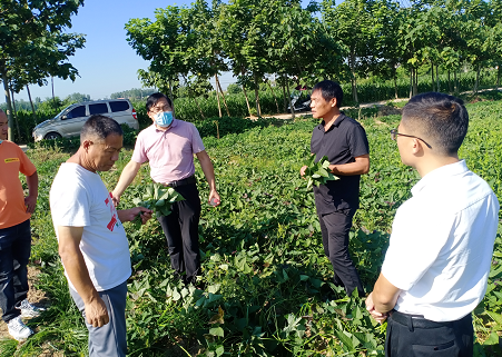 在種植基地紅薯茶葉采摘現(xiàn)場(chǎng),焦獻(xiàn)中結(jié)合高廟村紅薯產(chǎn)業(yè)發(fā)展、紅薯小鎮(zhèn)打造以及“五星黨支部”創(chuàng)建等經(jīng)驗(yàn),為小王營(yíng)村黨員干部代表“傳經(jīng)送寶”、答疑解惑。