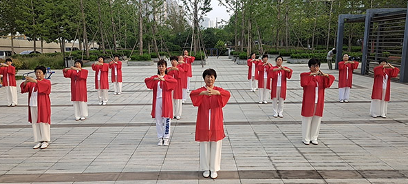 “如果信仰有顏色,那一定是中國紅”。社區(qū)太極愛好者在陳式太極拳第十二代傳人曹沁紅女士的帶動傳播下,自成體系,相互交流學(xué)習(xí),每天堅持練習(xí),影響了許多社區(qū)零基礎(chǔ)的太極愛好者參加太極習(xí)練,組成了社區(qū)紅色太極團(tuán)隊,同時也在愛心團(tuán)隊社會指導(dǎo)員隊長們的組織下,大家自覺自律的生活方式,科學(xué)的太極養(yǎng)生運(yùn)動,相互關(guān)心,不斷學(xué)習(xí)提升中,使許多人更是循序漸進(jìn)的受益了太極健康。同時,她們的紅色披沙也為城市增添了一道靚麗的風(fēng)景線。
