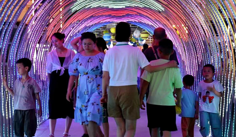 8月4日,夜幕降臨,華燈初上,在淮濱縣龍泉路上的奧特萊斯網(wǎng)紅街開(kāi)始熱鬧起來(lái),忙碌了一天的人們來(lái)到這里休閑娛樂(lè),品嘗美食,享受愜意時(shí)光。叫賣聲、音樂(lè)聲、吆喝聲此起彼伏。特色美食小攤點(diǎn)吸引了不少消費(fèi)者駐足品嘗,絢麗的燈光秀將這里裝扮的流光溢彩,各種娛樂(lè)設(shè)施為這里增添了動(dòng)感和活力。“在暑假期間,晚上有一些空閑時(shí)間,就和我的小姐妹在這里逛一逛,玩兒一些石膏娃娃,還有蹦床,我覺(jué)得這非常有意思,還能增進(jìn)我和小姐妹間的情誼。”游客曾祥云說(shuō)。