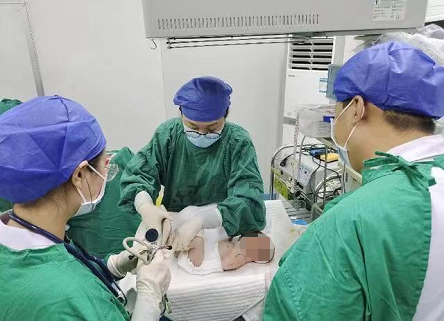 在一系列工作迅速進(jìn)行,有條不紊的各學(xué)科協(xié)作共同努力下,該院以最快的速度做好了術(shù)前準(zhǔn)備工作,在手術(shù)室隔離病房為孕婦進(jìn)行手術(shù)搶救,終于在心血管科、麻醉科、婦科全體參與搶救的醫(yī)護(hù)人員共同努力下,伴隨著一聲嬰兒的啼哭,一個重五斤八兩的男嬰降生了,大家懸著的心落地啦。嬰兒出生時羊水已經(jīng)流完,全身糞染....由于家屬沒有做任何產(chǎn)前準(zhǔn)備,貼心的童亞偉護(hù)士長,拿來嬰兒用的衣服和包被,把孩子包裹好,小家伙可真幸運(yùn),一出生就體驗(yàn)到大家庭的溫暖。