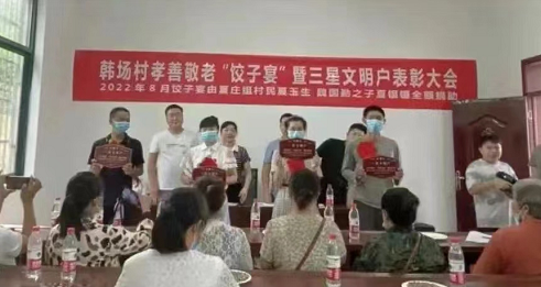 中新河南網(wǎng)9月1日電 近日,明港鎮(zhèn)韓場(chǎng)村舉辦孝善敬老“餃子宴”暨三星文明戶表彰大會(huì),邀請(qǐng)受表彰文明戶及村里高齡老人參加,本次活動(dòng)由愛心人士夏銀銀全額贊助。