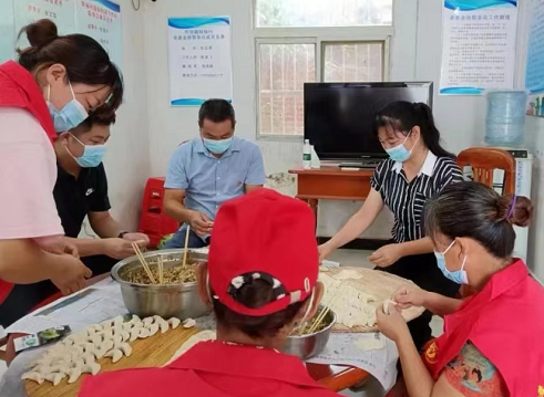 在隨后的餃子宴上,鎮(zhèn)、村干部和志愿者準(zhǔn)備餐具、布置桌椅、和面、搟皮兒、包餃子,期間還和老人們嘮家常,了解老人的身體及生活狀況,忙得不亦樂乎。上午11時(shí)許,一碗碗熱騰騰充滿愛心的餃子被送到老人手中,簡(jiǎn)簡(jiǎn)單單的餃子宴讓孝老敬老的觀念深入人心,讓老人切實(shí)感受到了黨的關(guān)懷和溫暖。
