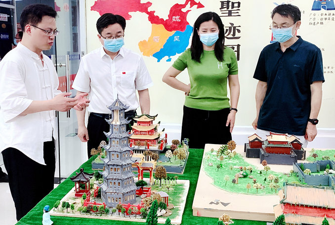 趙鵬一行參觀了創(chuàng)新創(chuàng)業(yè)中心和三國(guó)古跡遺址文化展覽館,詳細(xì)了解該校師生制作的三國(guó)古跡遺址模型和實(shí)景圖,認(rèn)真觀看了新聲頻道團(tuán)隊(duì)創(chuàng)作的三國(guó)古跡遺址專題片、曹魏故事音視頻作品和文創(chuàng)產(chǎn)品等。