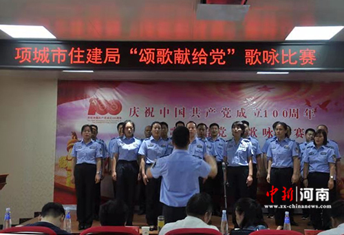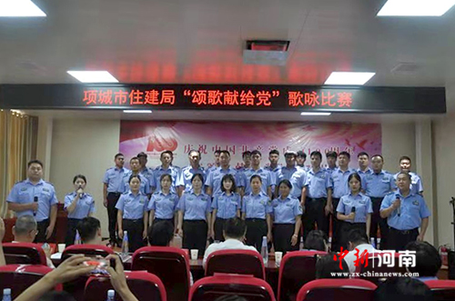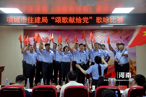 中新河南網周口6月29日電(閆鵬)為了迎接黨的百年華誕,歌頌黨的光輝歷程,進一步激發(fā)黨員干部的愛黨、愛國熱情。6月25日下午,項城市住建局舉辦“頌歌獻給黨 ”歌詠比賽活動,用歌聲向黨的百年華誕獻禮。該局全體班子成員、“光榮在黨50年”的老領導、老同志,項城市黨史學習教育第五巡回指導組王曉紅副組長、孔祥印主任,項城市防水協(xié)會、項城市裝飾協(xié)會、部分非公經濟組織、社會組織和住建局全體黨員干部現場觀看了這場比賽。