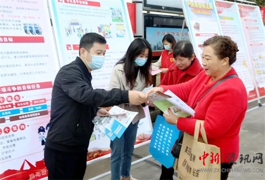 工委領(lǐng)導(dǎo)在向過往市民發(fā)放宣傳資料