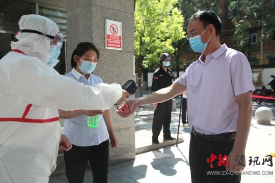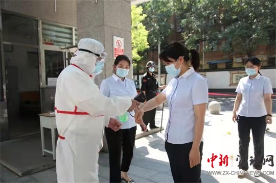 上午10點20分演練開始。教師們全程佩戴好口罩有序排隊入校,前后間隔一米,依次通過學校紅外線自動測溫通道。檢測過程中發(fā)現(xiàn)一名發(fā)熱人員,立即啟動疫情防控應急處置預案,并立即上報上級有關部門,在場校醫(yī)立即將學生引導至隔離地點,再次測量體溫,聯(lián)系附近醫(yī)院,轉運發(fā)熱人員,確保發(fā)熱人員不進校,最后對校園環(huán)境做好消毒處置工作。