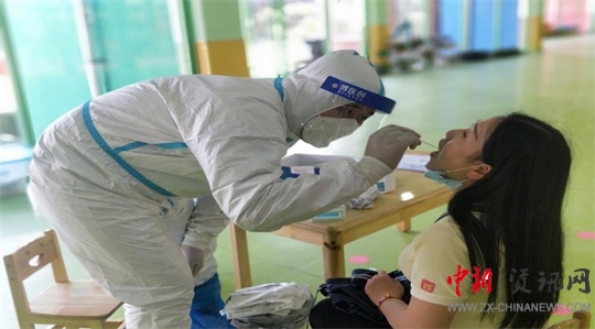 醫(yī)護(hù)人員為教職工核酸采樣