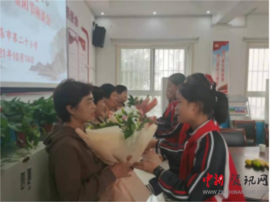 座談前,少先隊員為老教師們獻(xiàn)上鮮花,表達(dá)了對老教師的尊敬于愛戴。