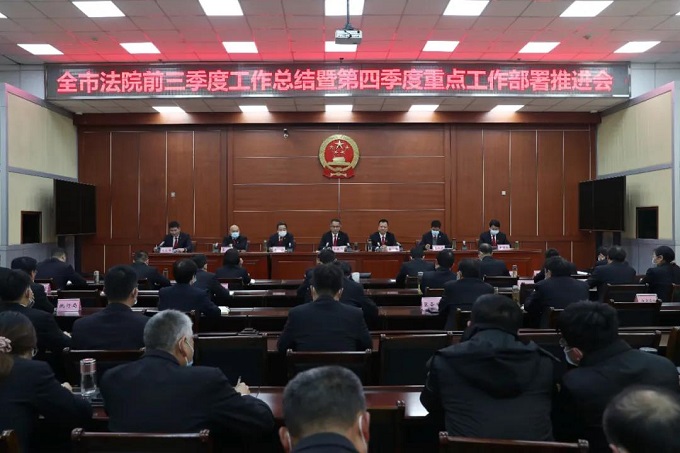中新河南網(wǎng)10月21日電(李克選 陳立麗)10月21日,河南省南陽市中級人民法院召開全市法院前三季度工作總結(jié)暨第四季度重點工作部署推進會,對全市法院2021年前三季度工作進行總結(jié),研究部署第四季度工作。南陽中院黨組書記、院長秦德平出席會議并講話,中院班子成員、各部門中層副職以上干部、全體員額法官參加會議。會議由中院黨組副書記、常務(wù)副院長李迎勝主持。