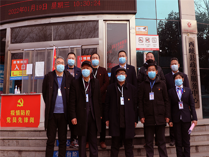 西峽縣第一屆政務(wù)服務(wù)社會(huì)監(jiān)督員們?cè)谡⻊?wù)服務(wù)中心南門集體合影