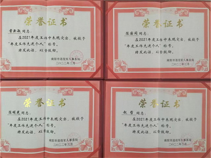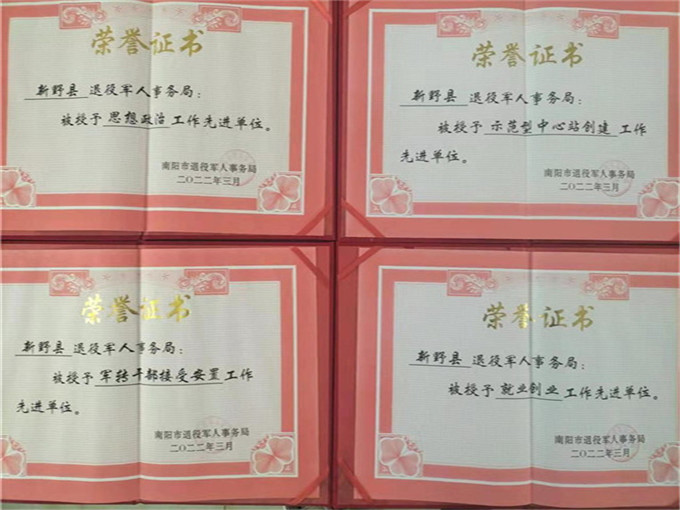 新野縣作為兵源大縣、優(yōu)撫大縣、安置大縣,自組建退役軍人事務工作機構以來,全體工作人員在縣委、政府的正確領導下,在上級退役軍人事務部門的指導關愛下,瞄準一流業(yè)績,拉高標桿,砥礪前行,各項工作均處在全市的前列。特別是在2021年度,被國家退役軍人事務部確定為退役軍人思想政治工作試點縣。全體人員在局黨組的帶領下,牢記使命,不忘初心,以黨史學習教育為動力,以敢為天下先的勇氣魄力,先行先試,開拓創(chuàng)新,思想政治工作、移交安置工作、優(yōu)撫褒揚工亮點紛呈。機關內(nèi)部風清氣正、團結合作,工作人員忠誠擔當、開拓進取,縣直和鄉(xiāng)鎮(zhèn)退役軍人事務工作者,認真履行職責,以退役軍人滿意為目標,用心服務,在平凡的工作崗位默默散發(fā)著光和熱,為退役軍人事務工作的持續(xù)健康發(fā)展做出自己的貢獻。