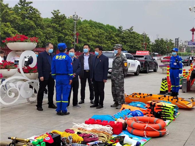 此外,西峽縣應急局還組織消防隊、藍天救援隊、應急救援隊出動20余輛應急救災車輛及1000余件救援裝備和器材?h長馬俊出席宣傳現(xiàn)場,并對消防隊員、藍天救援隊提出具體要求。