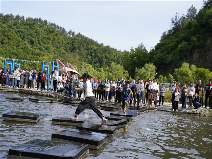 “整個(gè)五一,我們的停車場(chǎng)始終是滿載狀態(tài),每天近千人來(lái)這里游玩,我們這兒的老百姓在村委和縣文旅集團(tuán)的指導(dǎo)下,有開農(nóng)家菜館的,有路邊練攤的,還有就地入職工作的,我們村真的好久沒(méi)這么熱鬧了。”土槽村支書謝雙定感慨道。