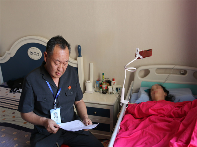 為維護自己的合法權(quán)益,朱某某向法院提起訴訟。由于她長期癱瘓在床、無法行動,無勞動收入,故向南召法院提出訴訟費緩交申請。考慮到她無法出行,立案庭(訴訟服務(wù)中心)庭長張震冒著酷暑、頂著烈日,前往朱某某住處了解具體情況,并幫助其辦理訴訟費減免緩所需的相關(guān)手續(xù)。