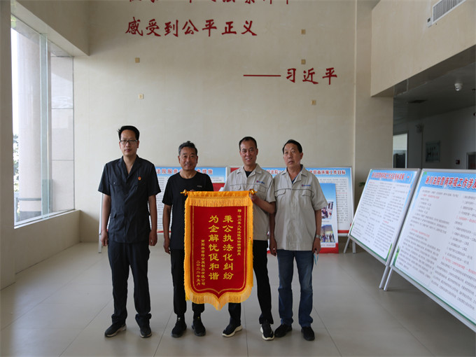 中新河南網(wǎng)6月9日電(李克選 李東)近日,淅川某金屬制品公司將一面印有“秉公執(zhí)法化糾紛、為企解憂促和諧”的錦旗,送到淅川法院立案庭謝蕊娜速裁團隊調(diào)解員楊淅橋手中,感謝他們依法公正、高效地調(diào)解案件,巧妙定紛止爭,使矛盾糾紛得到了妥善解決。