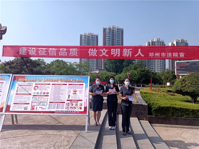 中新河南網(wǎng)6月16日電(李克選 李涵玉 朱小旭 肖怡楠)為著力打造誠信守法的營商環(huán)境,提高群眾和企業(yè)的信用意識和維權意識,6月16日,鄧州市人民法院組織干警到鄧州市人民公園開展以“建設征信品質(zhì) 做文明新人”為主題的宣傳活動。